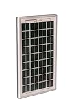 Our new high quality and economically priced 10 watt framed solar panel is perfect for trickle charging batteries or other small solar applications. Includes brackets for flat mounting.Specifications:Max. Power*: 10 Watts,Voltage at Maximum Power (Vmp): 17.5 V,Current at Maximum Power (Imp): .6 A,Type of Solar Material: Polycrystalline silicon,Weight: 3.3 lbs./1.5 kg,Dimensions: 10″ x 16″ x 7″/245 x 410 x 17 mm,Connector/wiring info: wires, 18″,Warranty info: 25 year limited power warranty from manufacturer*Measured at (STC) Standard Test Conditions: 25°C, 1 kW/m2 insolation, AM 1.5