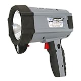 Rechargeable 1 million power spotlight – Hand held ~~ Halogen flashlight bulb – With secondery LED map light ~~ Powerful 6 volt 2.3 Ah rechargable sealed lead acid battery ~~ Halogen flashlight bulb – With secondery LED map light ~~ Locking trigger for easy use – Rubber pistol grip handle for better comfort and control.