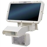 Add low-maintenance security light with this motion sensor, solar powered outdoor light. Just position the panel in a sunny location. At night, the light will automatically turn on when motion is detected and turn off again after a user-defined timer setting. No wiring is required, making this ideal for remote or hard to light locations. Brightness is equivalent to a 20 watt bulb. White finish UV protected plastic and ABS housing. Solar powered. Auto on/off with motion detection on. Includes 32 wide-angle LEDs. Includes a 4 volt rechargeable lead acid battery. Operates up to 10 hours on a full charge. Covers range of 190 feet. Solar panel is 1/2″ deep, 13 1/2″ wide, and 7 1/4″ high. Light is 9 3/4″ wide, 9″ deep and 14 3/4″ high.