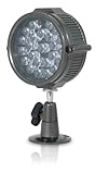 This is a good IR source. The only thing wrong with it is the daylight sensor is very sensitive and I wanted it on 24/7 so I covered the small sensor which is located inside the device with the LED’s with a small piece of tape and the problem was solved. It didn’t affect the light output. At first I thought there was something wrong with the electrical connections inside because it appeared that the LED’s were turning on and off when I jiggled the power cord running into the Illuminator at night. It turns out I was just barely exposing the light detector to a nearby lamp periodically so you should be aware that the light sensor can be activated by a lamp and will shut off the IR Illuminator. The fix is simple though. Please note that this is more of a Spot Light than a Flood Light but it is quite powerful.