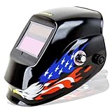 Neiko Auto Darkening Solar Powered Welding Helmet – ANSI Approved, American Eagle Design with Polished Black Finish