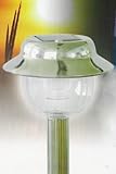 Illuminate your garden, walkway or lawn with the Solar Lights. Made of stainless steel with a plastic stake, these sun powered lights are completely wireless, making it possible to easily place and move the lights anywhere around the house. Sold in a set of 4. Built-in sensor automatically turns on the lights when the surroundings become dark and turns off the lights during daylight. High efficiency built-in solar panel automatically charges the batteries during day light. Each charge provides illumination for up to at least 8 hours. Low power consumption, long life LED tested to last over 10,000 hours. Also features manual on/off switch for overriding automatic functions. Each light contains one super bright LED bulb. .