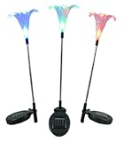Set Of 3 Solar Color Changing Flower Garden Stakes