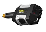 Stanley 100-Watt Inverter – Auto has 100 continuous watts of power, a 110 power outlet and a USB power outlet. It features silent running technology so avoids the annoying fan noise. This inverter has 3 positions for versatility and a dual direction plug interface.